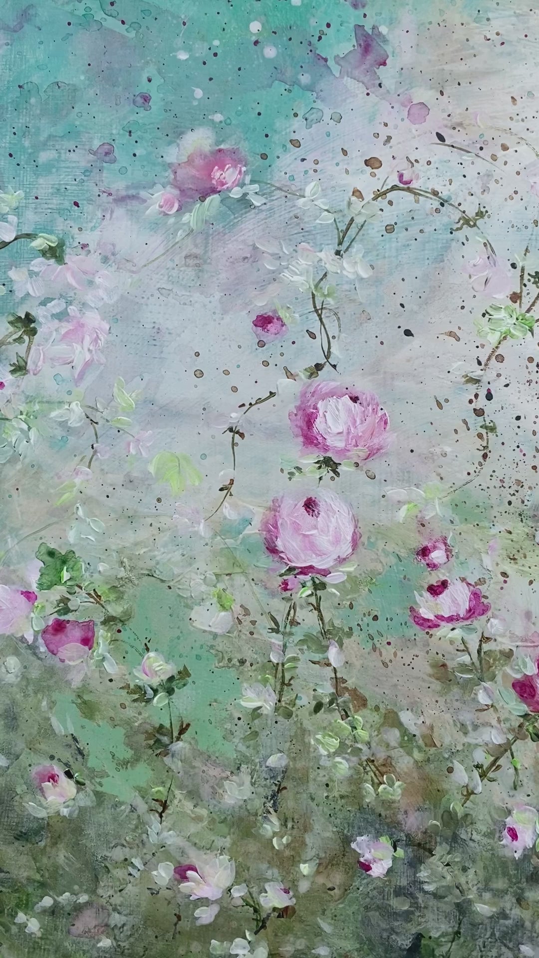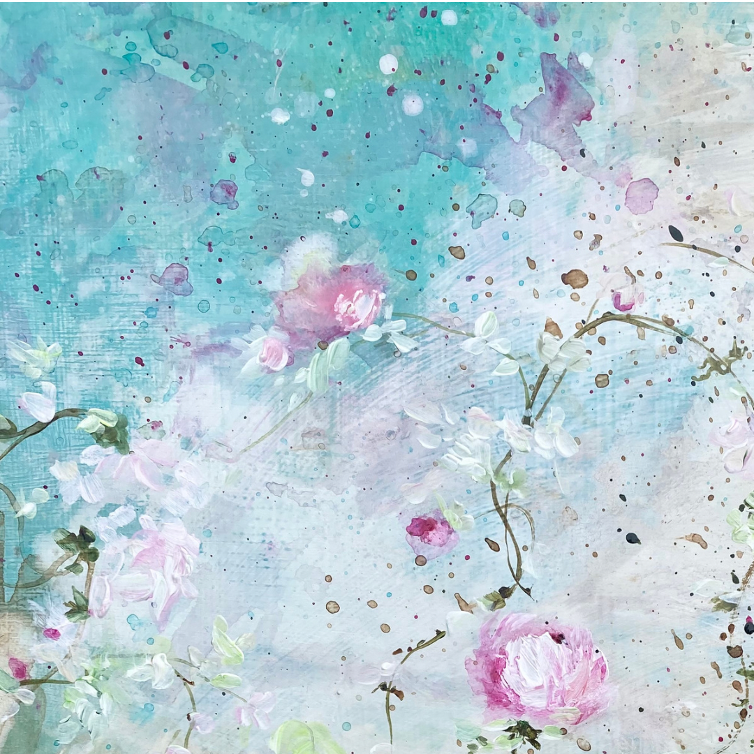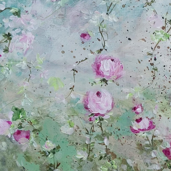 9” x 12” original acrylic rose flower impressionist painting on wooden board. Perfect for Shabby Chic and Cottage style decor.