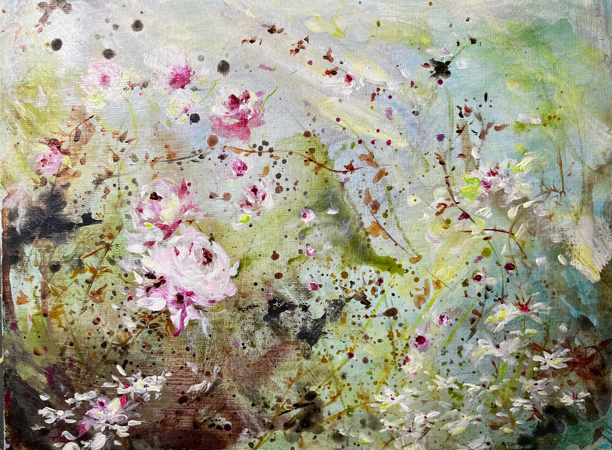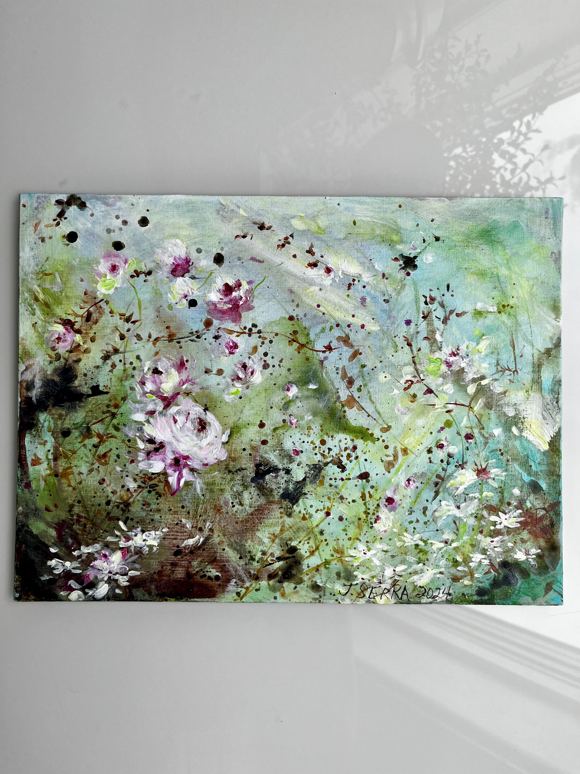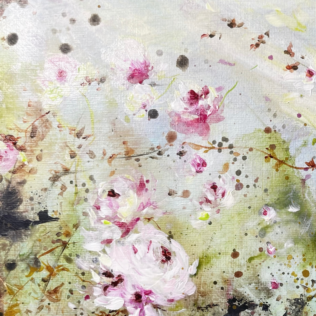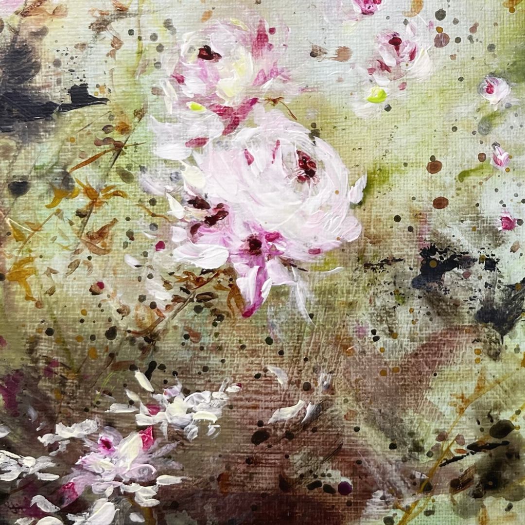 9” x 12” Acrylic floral shabby chic style painting on flat wooden board