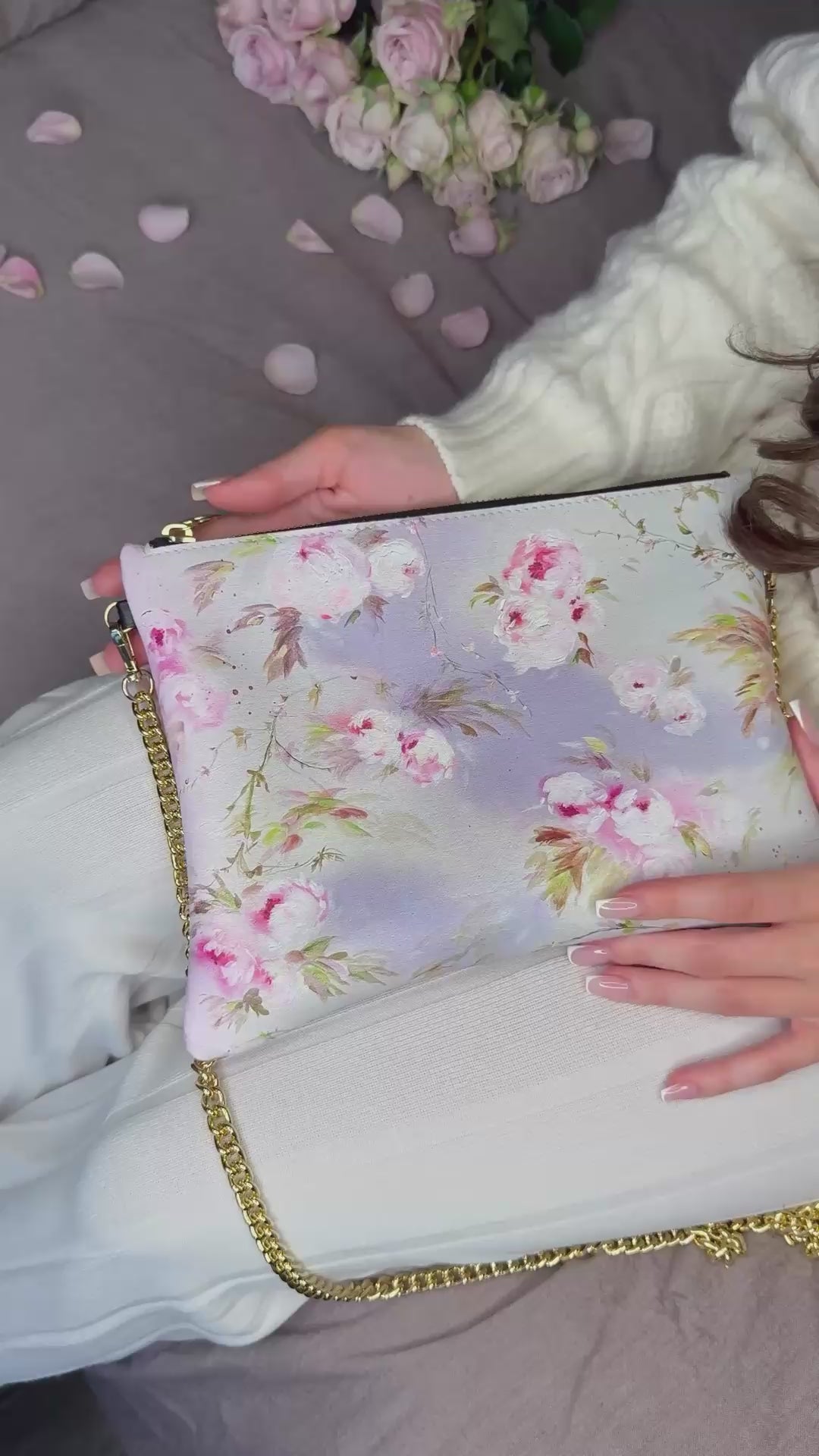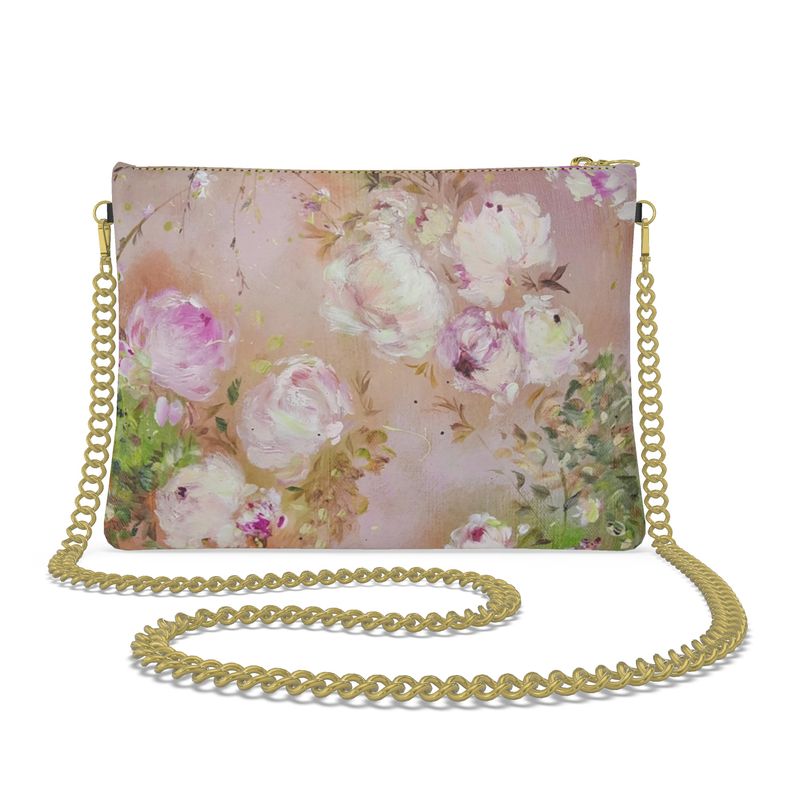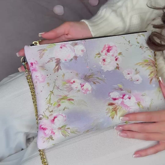 Carry art wherever you go with these custom crossbody bags featuring Jen Serra’s hand-painted florals. Each piece is crafted from 100% real Nappa leather — a buttery-soft, premium bovine-calf leather known for its luxurious feel and lasting quality. For those who prefer a non-leather option, the faux leather alternative offers the same refined texture and durability, with a warm, supple finish. Inside, every bag is lined with our luxury Suede Vision fabric — a soft beige suede-like material that feels as elegant as it looks. Both timeless and practical, these crossbody bags blend fine craftsmanship with Jen’s romantic artistry.