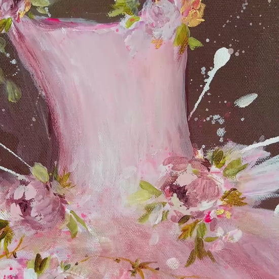 The florals that scatter through the skirts and across the background feel like music made visible, light, whimsical, and full of grace. This original painting is meant to bring a sense of calm, joy, and feminine magic into your home…a reminder that even in the quiet moments, beauty is always dancing around us.